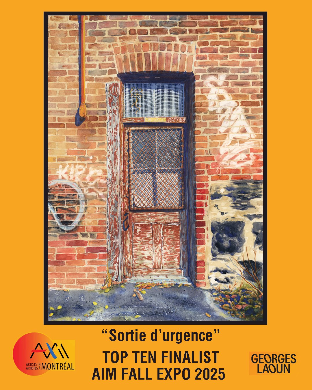 “Sortie d’urgence” received a Top Ten Finalist Award at the Artists in Montreal Fall Expo 2025. The Exhibition was at Opticien Georges Laoun on rue St-Denis.